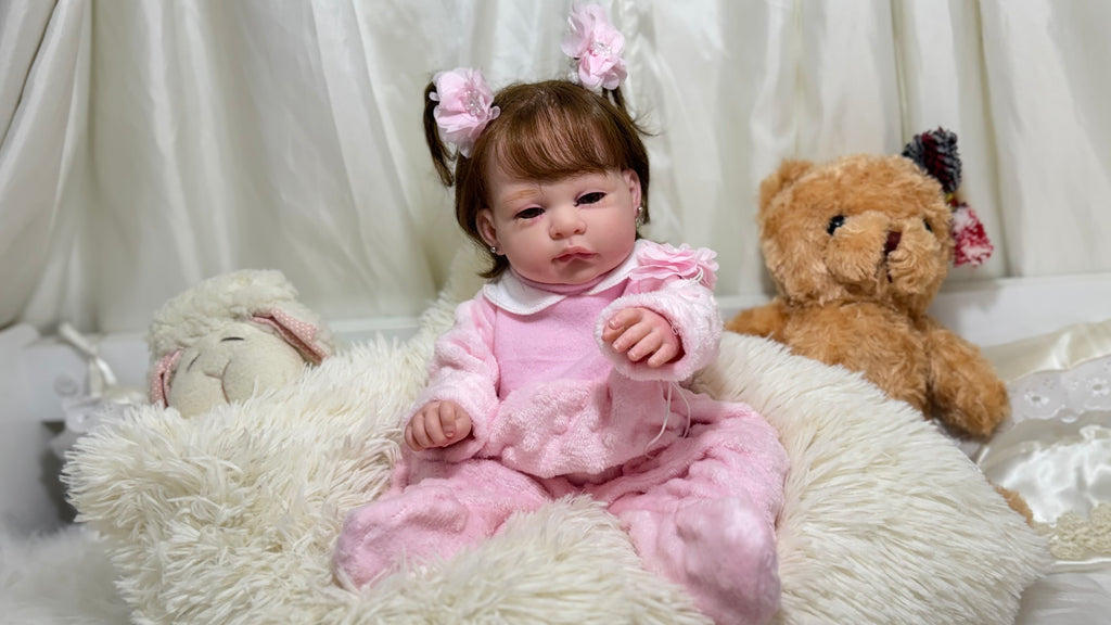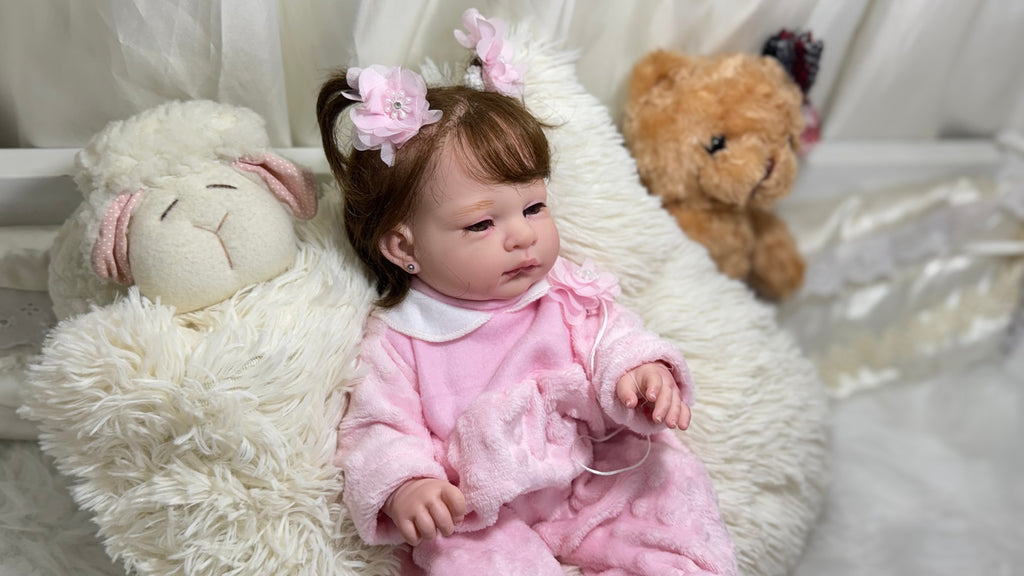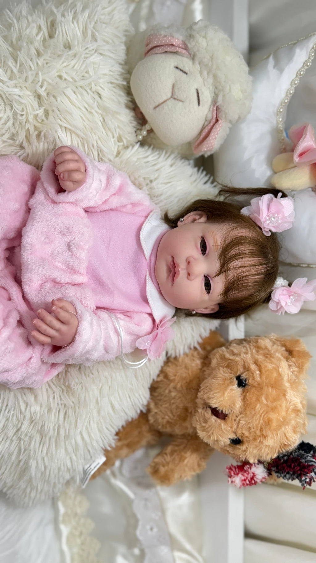 Cada detalhe foi pensado com cuidado para transmitir emoção: o rostinho sereno, o corpinho delicado de vinil, o cheirinho suave e aquele olhar que parece pedir colo. Maria Flor não é apenas uma boneca — ela é uma experiência de amor e ternura. 🌷