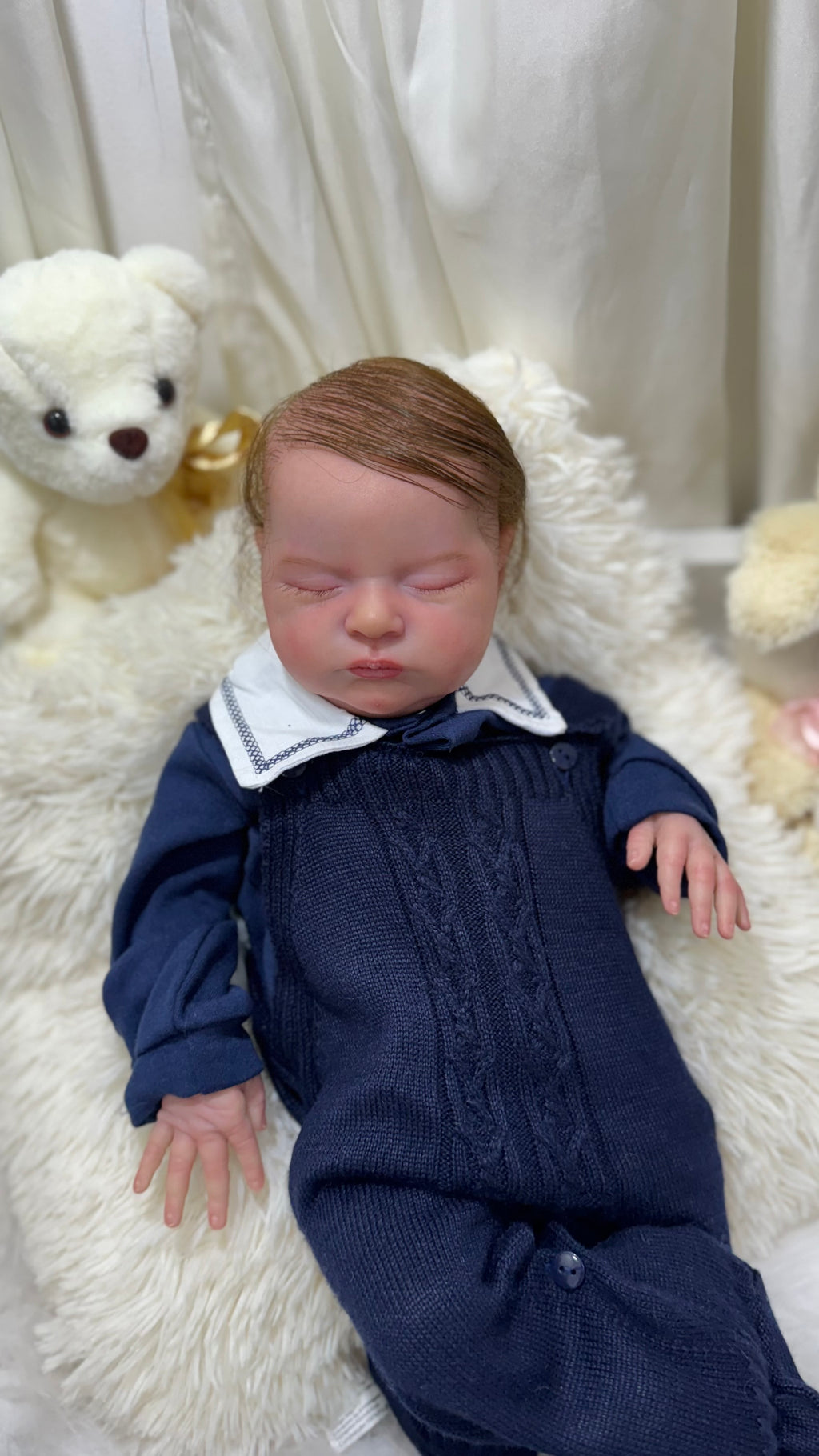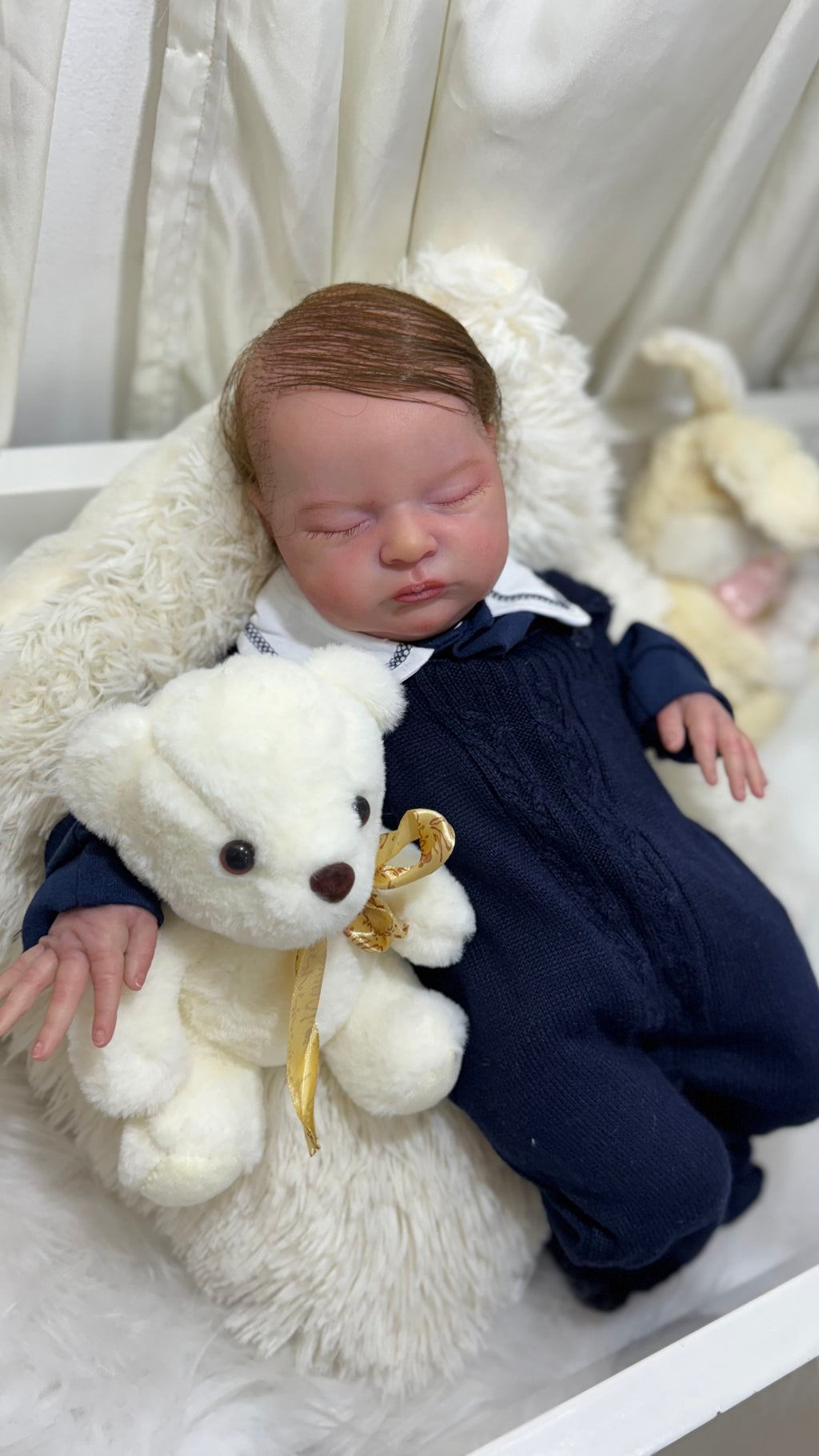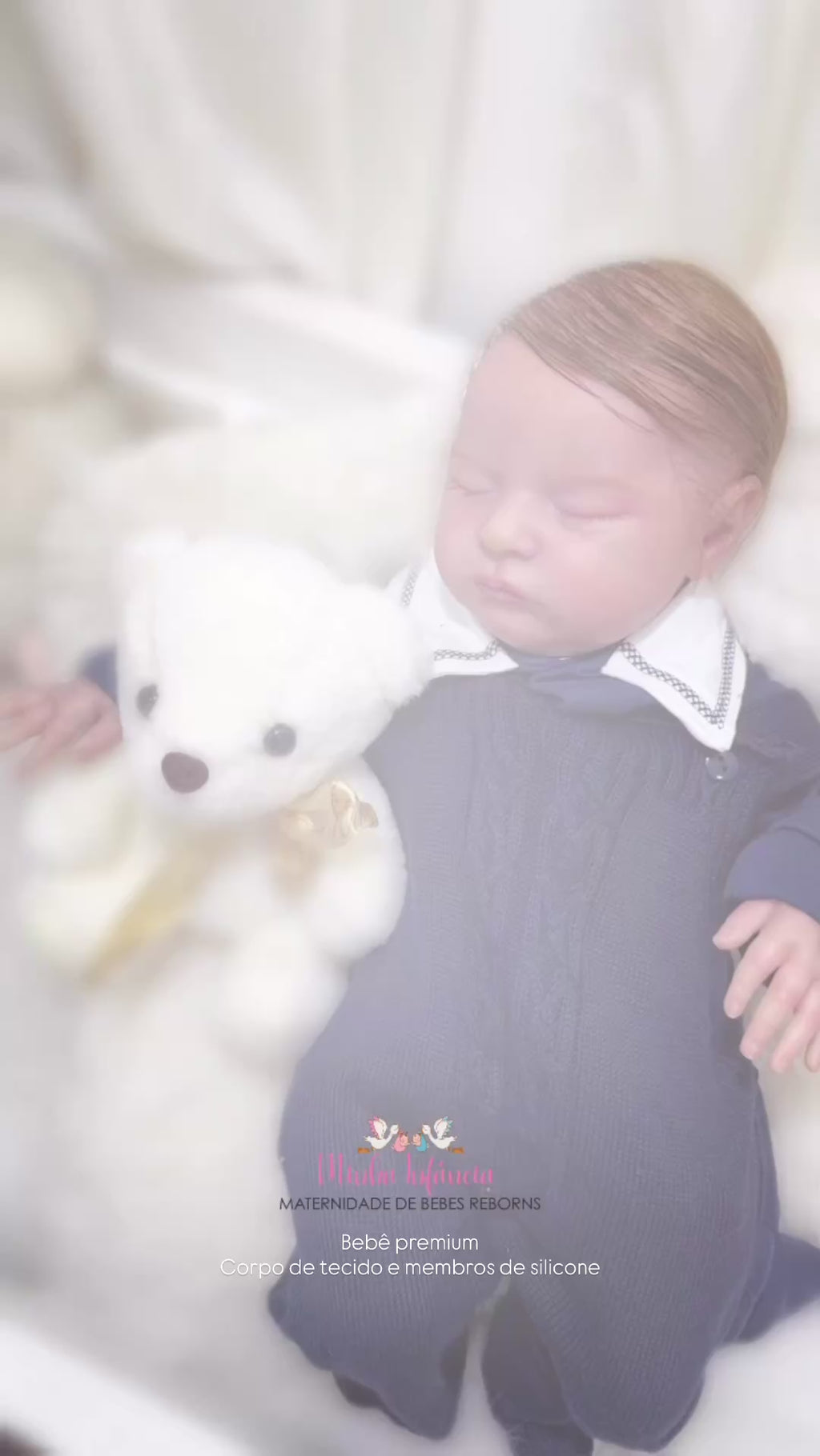 Seu corpo de tecido macio proporciona conforto ao segurá-lo, enquanto seus membros de silicone realista dão o toque final de autenticidade e delicadeza. Cada detalhe foi pensado para transmitir emoção, ternura e realismo extremo. 💙