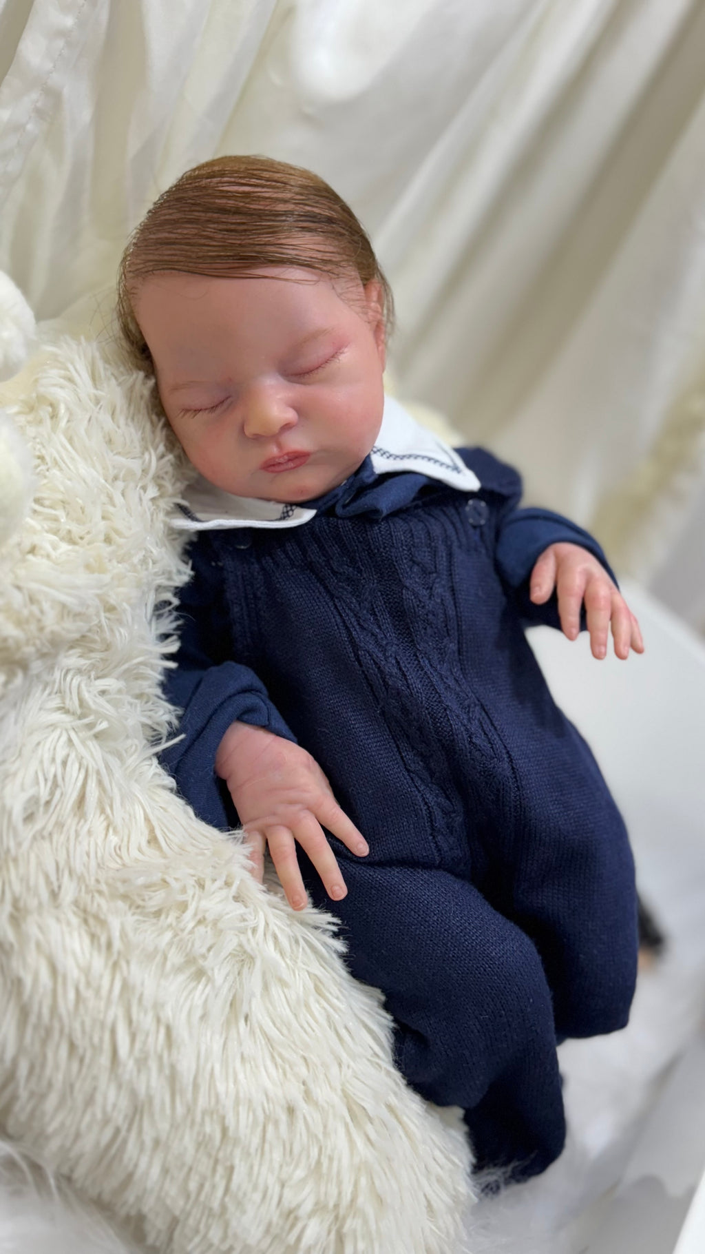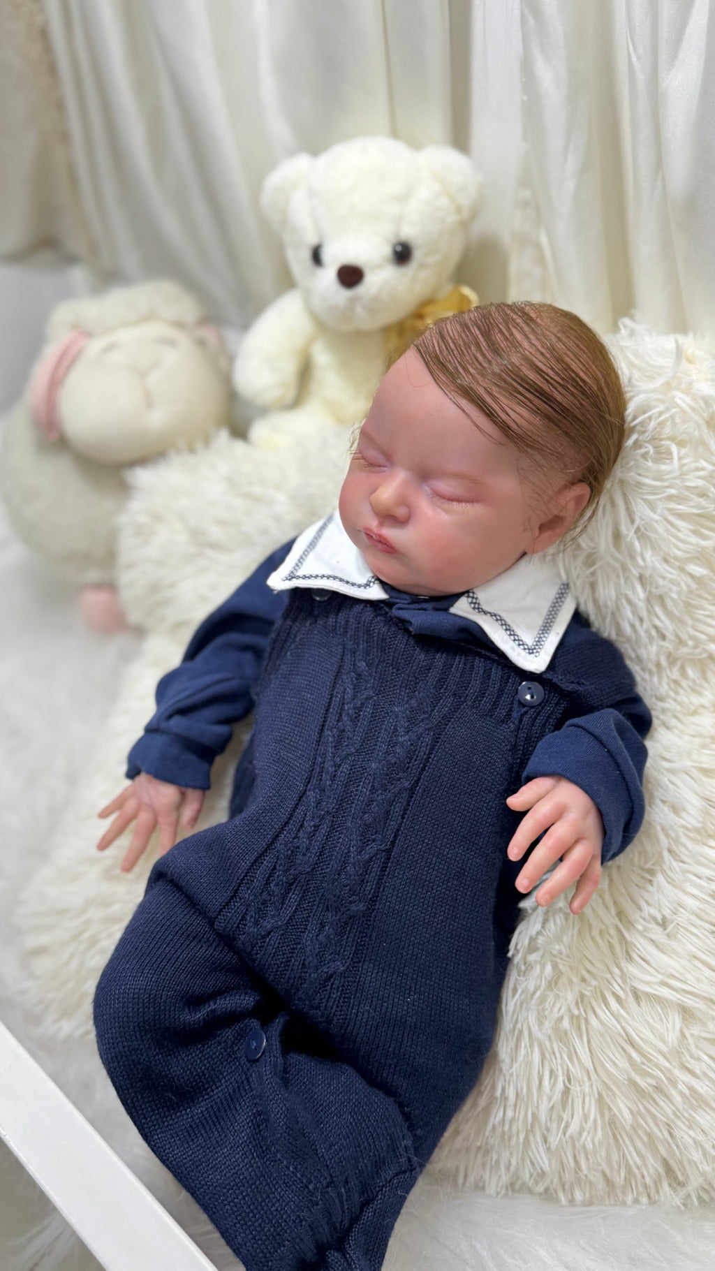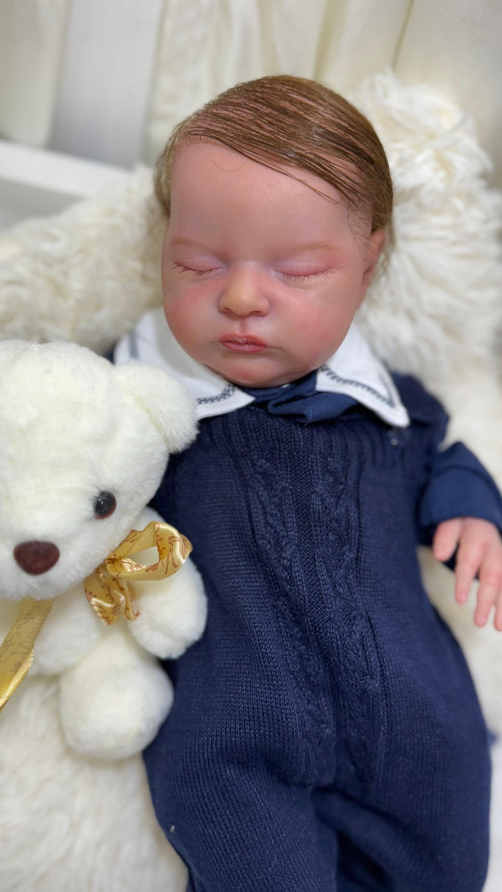 Seu corpo de tecido macio proporciona conforto ao segurá-lo, enquanto seus membros de silicone realista dão o toque final de autenticidade e delicadeza. Cada detalhe foi pensado para transmitir emoção, ternura e realismo extremo. 💙